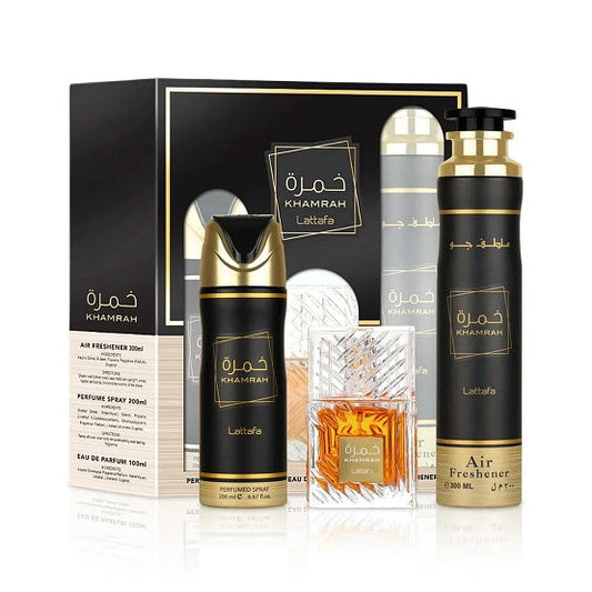 Lattafa - Khamrah Gift Set (Edp 100ml+200ml Deo+ 300ml A/F)