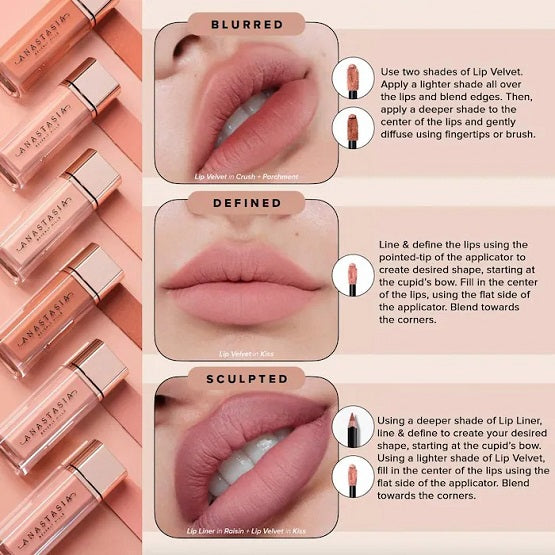 What Else You Need to Know: Anastasia Beverly Hills Lip Velvet is a velvet-smooth lip mousse with weightless, full pigment, true-matte color, cushioned, comfortable wear, and a smoothing lip finish that allows you to line and apply with a multifunctional, teardrop-shaped cushioned wand.