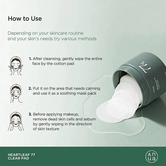 Anua Heartleaf 77% Clear Pad 70 Patches is your skincare hydration reservoir, infusing your skin with moisture for a dewy, supple finish. The gentle exfoliation action clears away impurities, dead skin cells, and excess oil, leaving your skin feeling revitalized, smooth, and ready to absorb the nourishing essence.