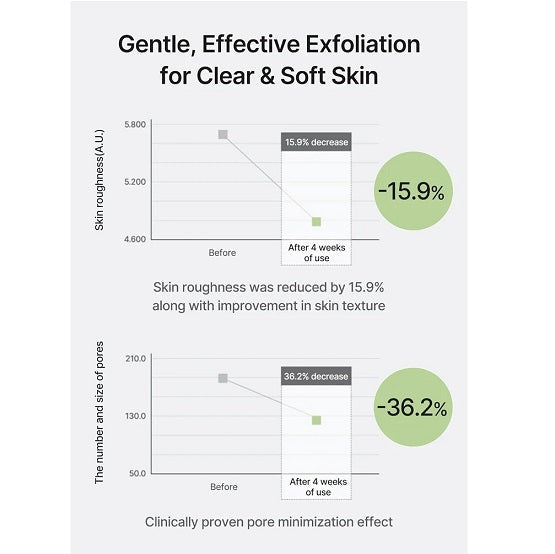 - Offers exfoliating effect to smoothen skin texture with BHA, PHA, LHA.