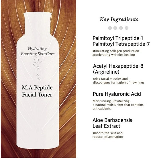 - This PT M.A Peptide Facial Toner with Peptide Matrixyl 3000 and Argireline Peptide Complex to sooth the skin and to reduce inflammation.
