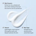 Its lightweight cream texture absorbs quickly, delivering a non-sticky, fragrance-free finish that layers beautifully under makeup. Dermatologist-tested and vegan-certified, this formula is especially suitable for dry, unbalanced, and sensitive skin types that need hydration and barrier support along with sun protection