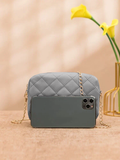 Available in classic gray, this bag is a versatile choice that complements any style and occasion. The quilted pattern adds a sophisticated element, while the light metal chain enhances the overall appeal. With dimensions of 2" in width, 7.5" in length, and 5" in height, it strikes the perfect balance between compactness and functionality.