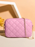 Available in Peach Pink, this bag is a versatile choice that complements any style and occasion. The quilted pattern adds a sophisticated element, while the light metal chain enhances the overall appeal. With dimensions of 2" in width, 7.5" in length, and 5" in height, it strikes the perfect balance between compactness and functionality.