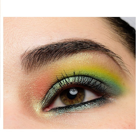 Huda Beauty Python Obsessions Eyeshadow Palette is a new, limited edition palette that includes five matte eyeshadows and four shimmer shades in a more colorful composition. The quality was solid across the board with soft, fairly pigmented and blendable mattes and shimmers that worked well with a dry brush (as well as a dampened brush or fingertip); the latter hasn’t always been the case with Huda Beauty’s shimmer formula, which has often been too thick/dense.