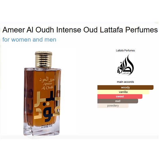 Ameer Al Oudh Intense Oud by Lattafa Perfumes is a Oriental fragrance for women and men. Ameer Al Oudh Intense Oud was launched in 2021. Top notes are Woodsy Notes and Agarwood (Oud); middle notes are Sugar and Vanilla; base notes are Agarwood (Oud), Sandalwood and Herbal Notes.