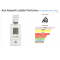 Ana Abiyedh by Lattafa Perfumes is a fragrance for women and men. Top notes are Bergamot and Orange; middle notes are Vanilla and Pear; base notes are Musk and Amber.