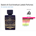Bade'e Al Oud Amethyst by Lattafa Perfumes is a Oriental Vanilla fragrance for women and men. Bade'e Al Oud Amethyst was launched in 2021. Top notes are Pink Pepper and Bergamot; middle notes are Turkish Rose, Bulgarian Rose and Jasmine; base notes are Agarwood (Oud), Amber and Vanilla.