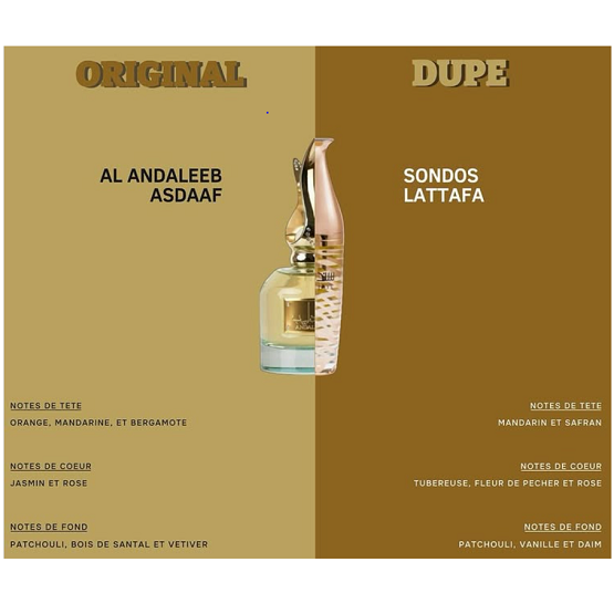 - ??SONDOS is the new fragrance version of Lattafa house, not only beautiful in appearance, but also great in scent. ?? Opening is a gentle, delicate combination of jasmine and sweet vanilla.
