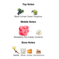 - middle notes are Strawberry Fizz Candy and Gardenia;