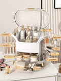 Elegant Multi-Layer Cosmetic Organizer with Lid & Drawers