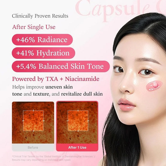 Medicube TXA Niacinamide Capsule Cream is a brightening and hydrating moisturizer designed to improve uneven skin tone and boost overall radiance. Formulated with tranexamic acid (TXA), niacinamide capsules, alpha-arbutin, and glutathione, this non-comedogenic cream targets dark spots, dullness, and dehydration. Ideal for all skin types, especially blemish-prone and sensitive skin.