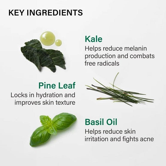- Hydrating Formula: Infused with nourishing ingredients like Kale Extract, Pine Leaf, and Basil Oil to keep your skin hydrated, smooth, and visibly glowing