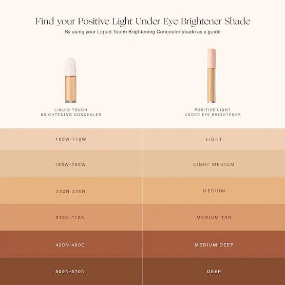 RARE BEAUTY Positive Light Under Eye Brightener is a lightweight, liquid concealer designed to instantly brighten and hydrate the under-eye area. This innovative formula provides sheer, flexible coverage that effectively conceals dark circles and discoloration. The hydrating formula soothes and refreshes the delicate skin around the eyes, leaving you with a refreshed and awake appearance.