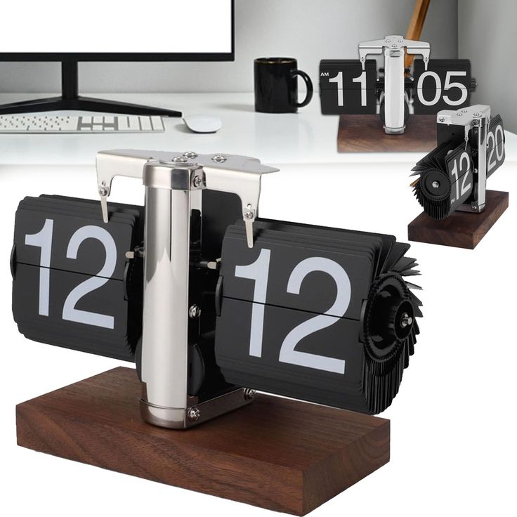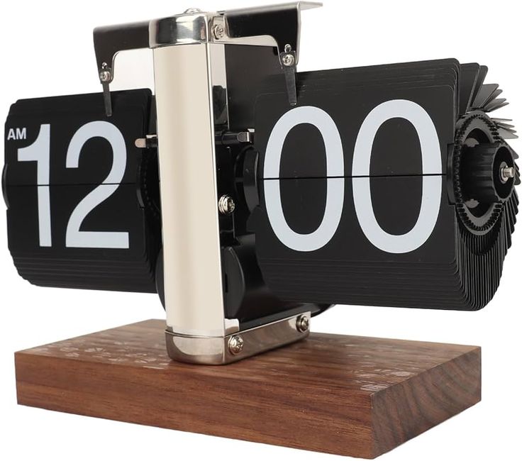 This flip clock automatically turns its pages to display the time. To set the correct time, simply adjust the blade to the desired hour. Its mechanical setup ensures timekeeping accuracy with a unique retro charm.