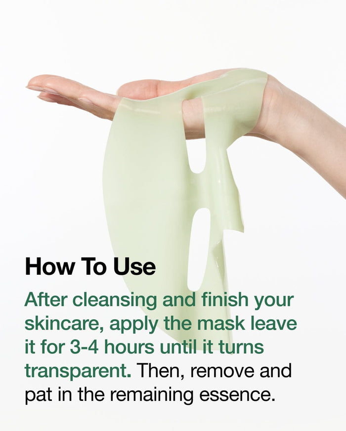 After cleansing, use a toner to refine the skin texture, then take out the separated upper & lower masks and remove the film. Leave the make on for 3 to 4 hours until it turns transparent, then remove the mask and pat in the remaining essence.