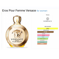 Eros Pour Femme by Versace is a Floral Woody Musk fragrance for women. Eros Pour Femme was launched in 2014. Eros Pour Femme was created by Alberto Morillas, Olivier Cresp and Nathalie Lorson. Top notes are Sicilian Lemon, Pomegranate and Calabrian bergamot; middle notes are Lemon Blossom, Jasmine Sambac, Jasmine and Peony; base notes are Musk, Ambroxan, Woodsy Notes and Sandalwood.